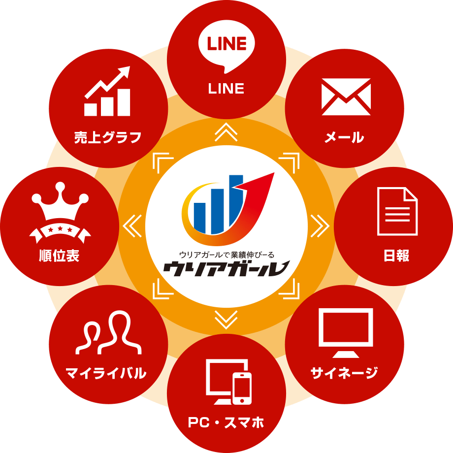 「ウリアガール」は、営業状況をリアルタイムで「見える化」し、営業にライバルの数字を意識するきっかけを与えることで